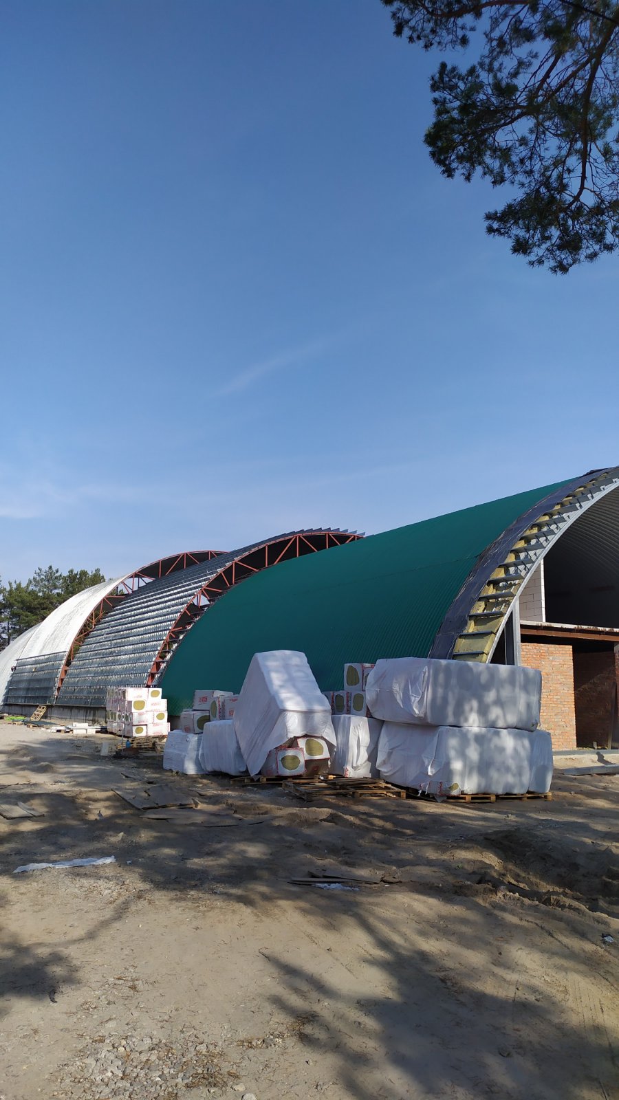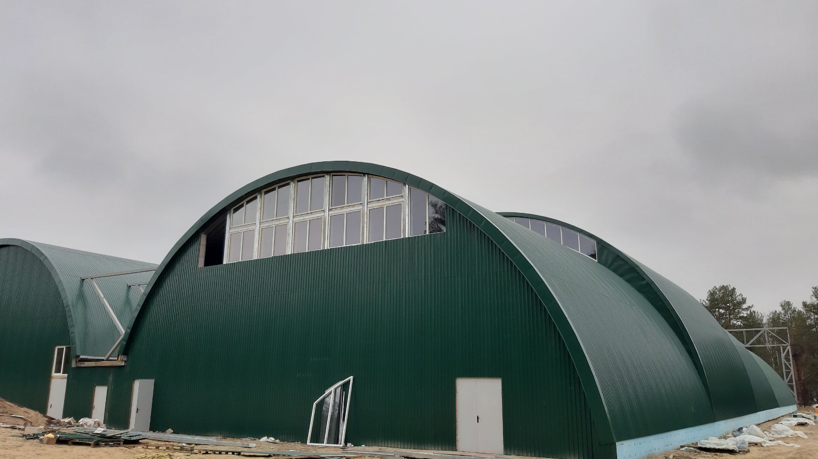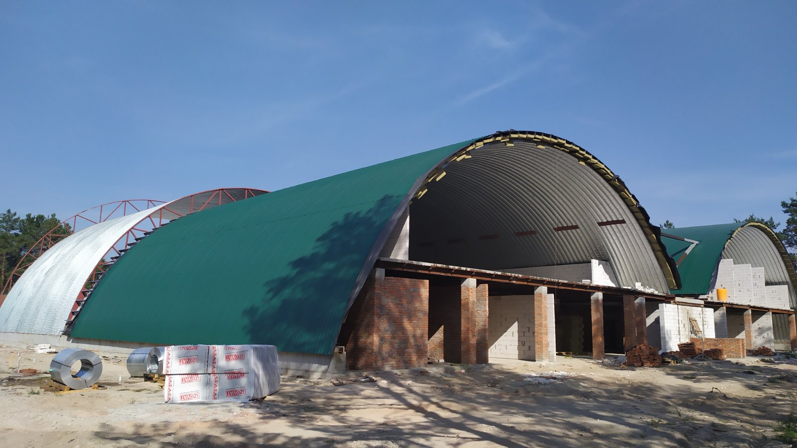 - The building is heated, fencing structure – galvanized steel arcs with outer layer of heat insulation of corrugated steel sheet.