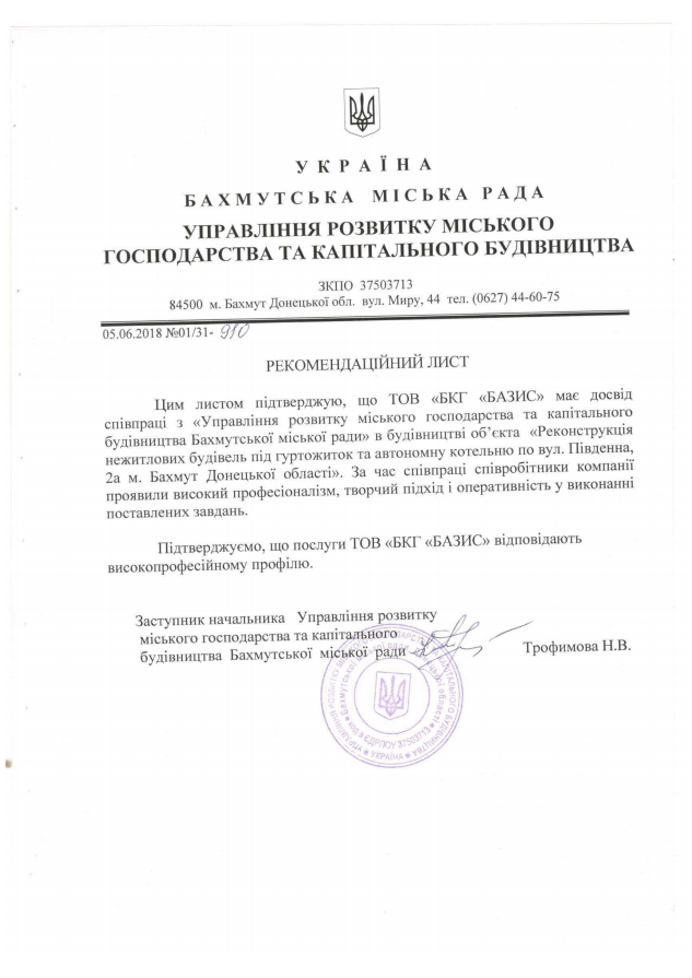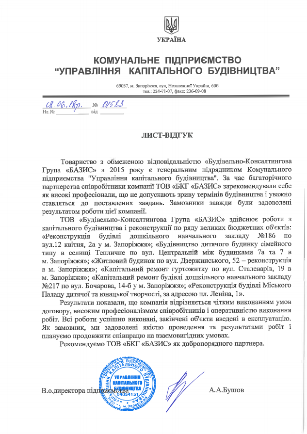 Серед наших замовників і партнерів - Національна гвардія України, КП «Управління капітального будівництва» Запорізької міської ради, Управління розвитку міського господарства та капітального будівництва Бахмутського міської ради, Луганська обласна державна адміністрація та інші державні, муніципальні і комерційні структури.