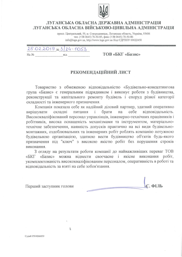 Для проведення діяльності та участі у державних замовленнях з будівництва об’єктів з особливим режимом, ТОВ "БКГ "БАЗИС", відповідно до Закону України «Про державну таємницю» створено РСО та отримано дозвіл на здійснення діяльності, пов’язаної з державною таємницею виданий СЛУЖБОЮ БЕЗПЕКИ УКРАЇНИ