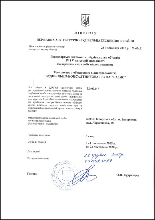 Компанія «Базис» має повний комплект дозвільної документації для будівництв: