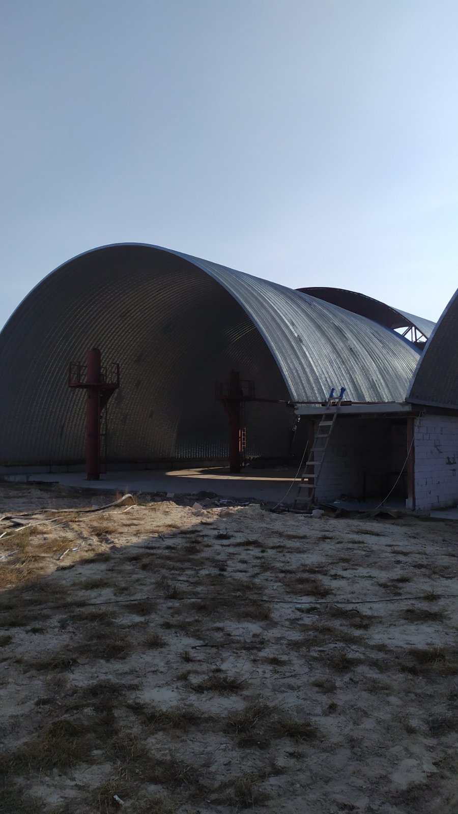 - Будова опалюється, огороджувальні конструкції - арки з оцинкованої сталі, утеплені з зовнішнім шаром з профлиста.