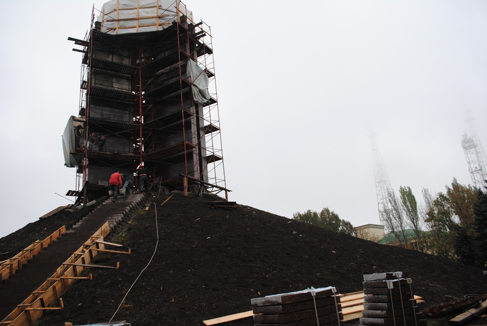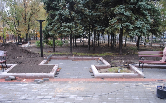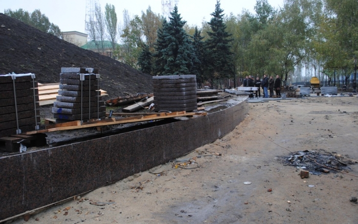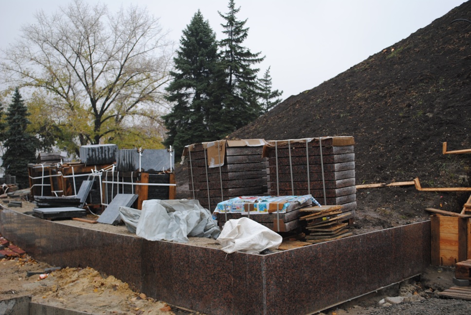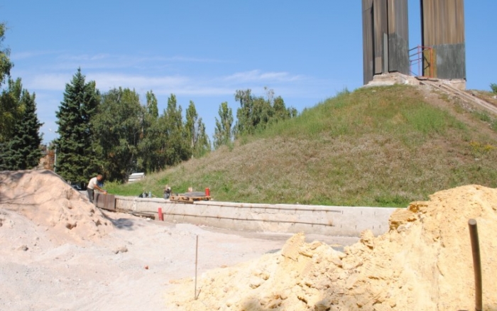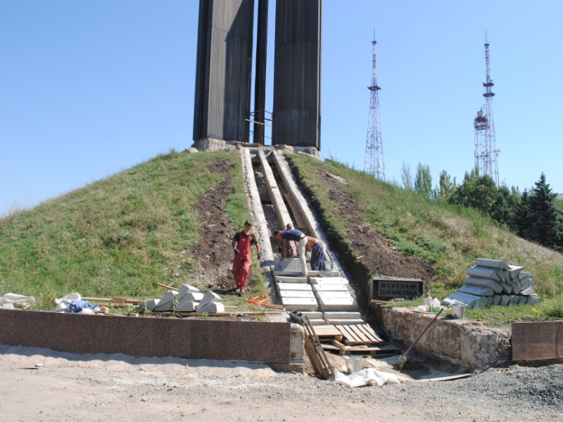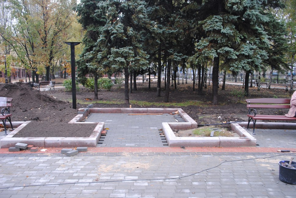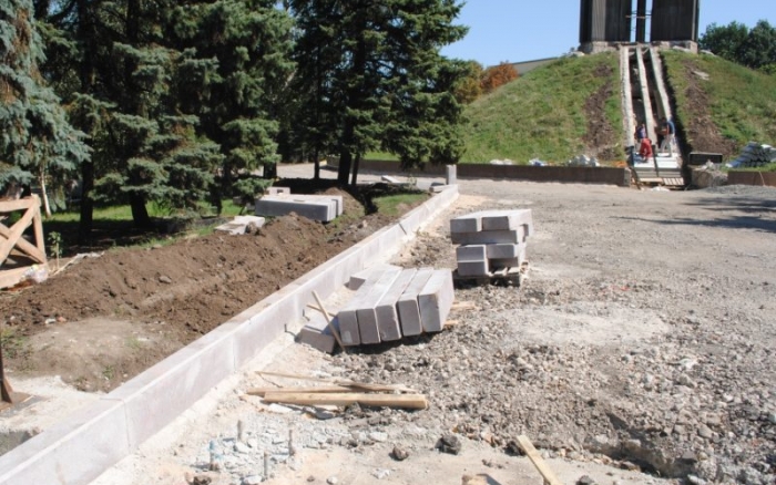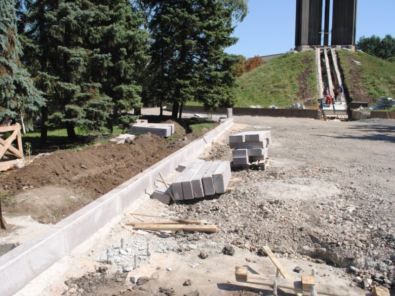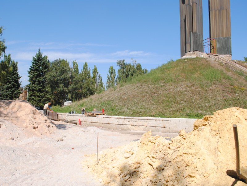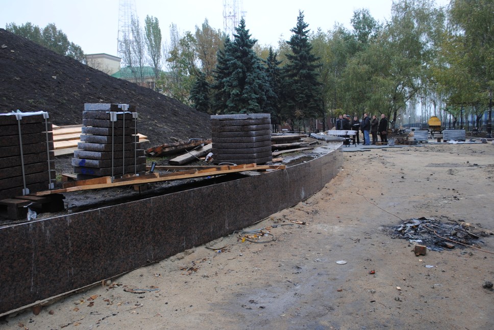 В межах робіт з реконструкції та благоустрою були проведені заміна облицювання трьох 12-метрових пілонів з дюралюмінію на облицювання гранітом по системі «навісні фасади», заміна трьох сходів і підпірних стінок новими з облицюванням гранітом, заміна асфальтобетонного покриття існуючих доріжок на покриття плиткою. Також по всьому периметру встановлено паркове освітлення (по аналогії з центральними проспектами і бульварами міста), 32 лавочки, система поливу.