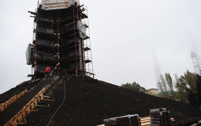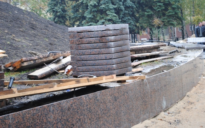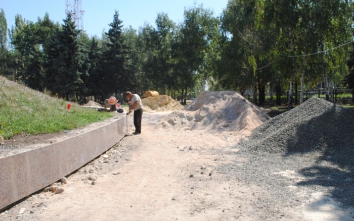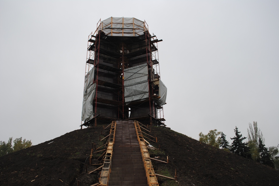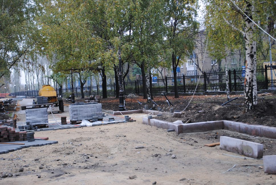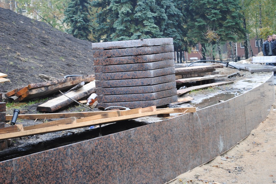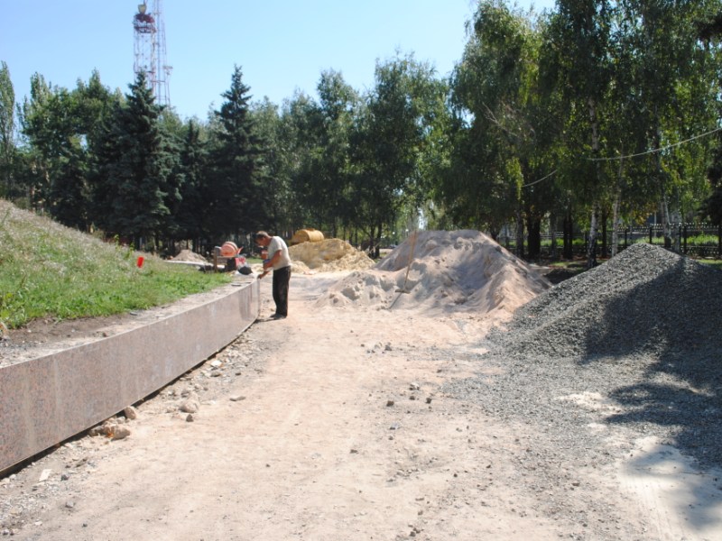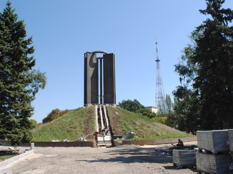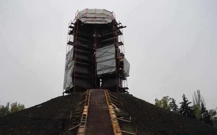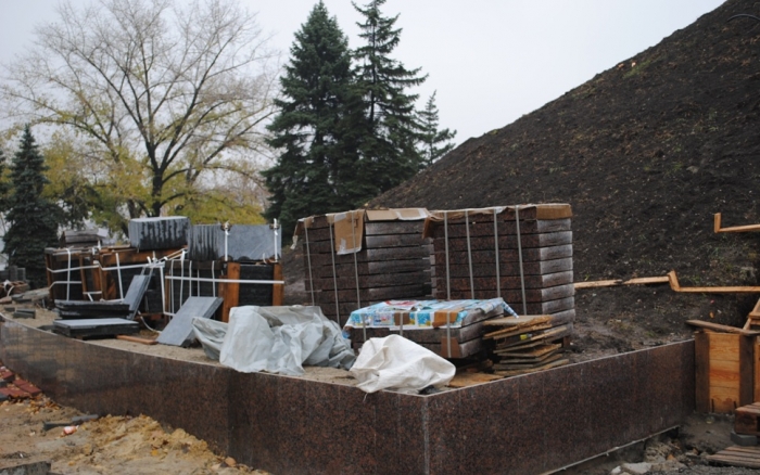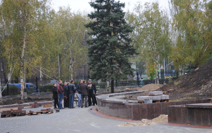 В межах робіт з реконструкції та благоустрою були проведені заміна облицювання трьох 12-метрових пілонів з дюралюмінію на облицювання гранітом по системі «навісні фасади», заміна трьох сходів і підпірних стінок новими з облицюванням гранітом, заміна асфальтобетонного покриття існуючих доріжок на покриття плиткою. Також по всьому периметру встановлено паркове освітлення (по аналогії з центральними проспектами і бульварами міста), 32 лавочки, система поливу.
