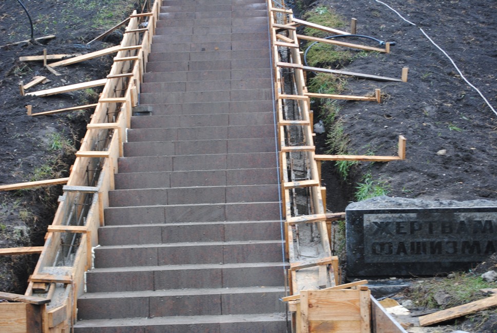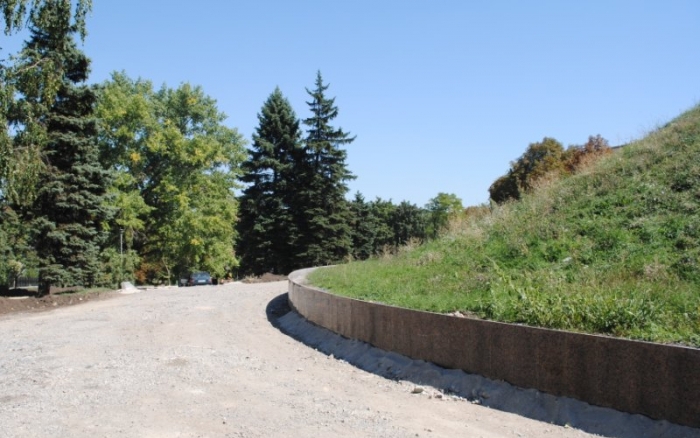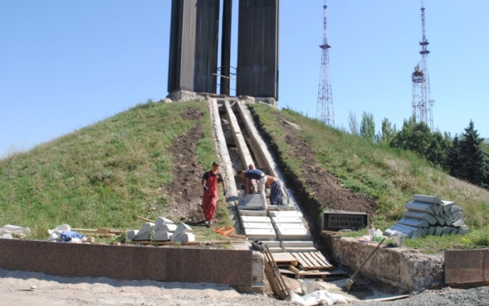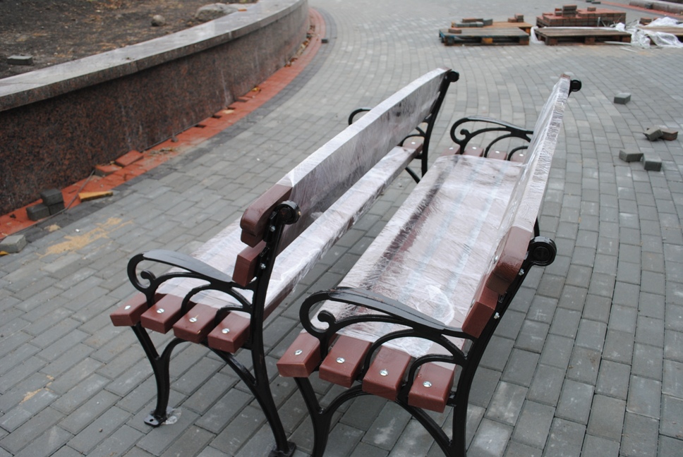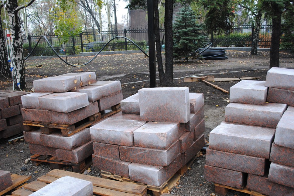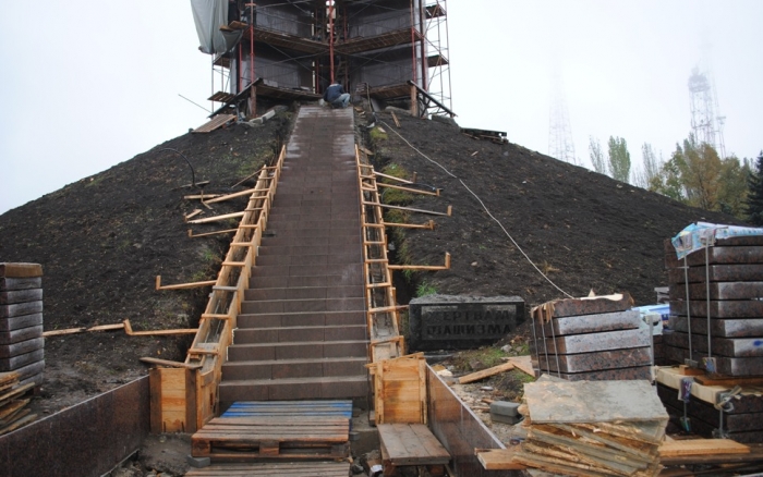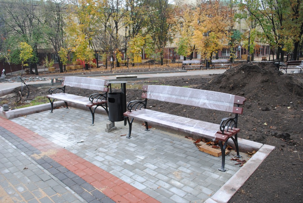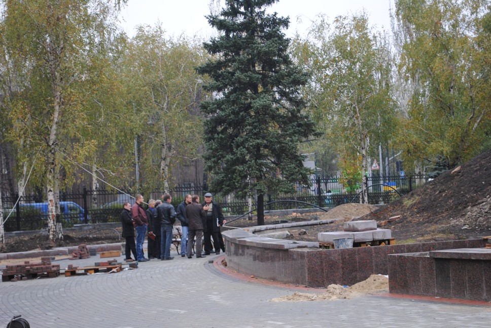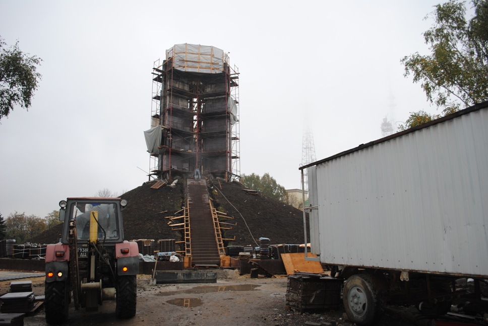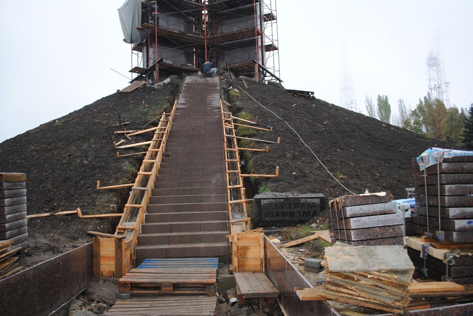 В межах робіт з реконструкції та благоустрою були проведені заміна облицювання трьох 12-метрових пілонів з дюралюмінію на облицювання гранітом по системі «навісні фасади», заміна трьох сходів і підпірних стінок новими з облицюванням гранітом, заміна асфальтобетонного покриття існуючих доріжок на покриття плиткою. Також по всьому периметру встановлено паркове освітлення (по аналогії з центральними проспектами і бульварами міста), 32 лавочки, система поливу.