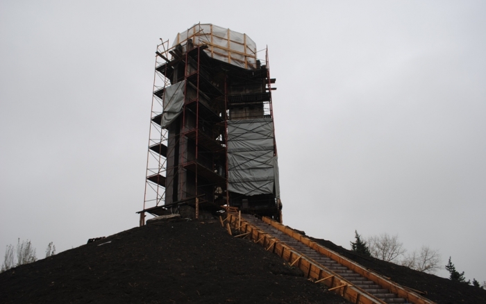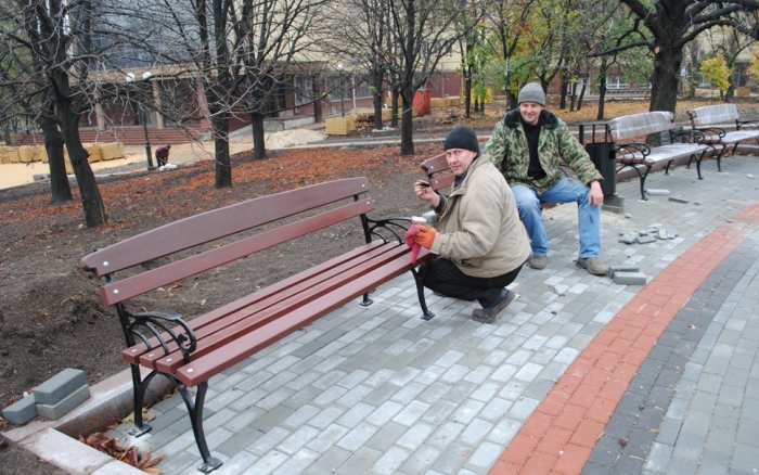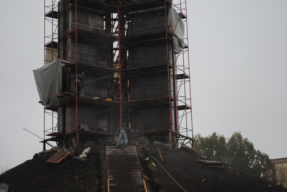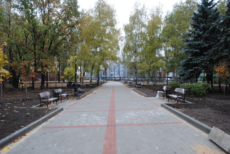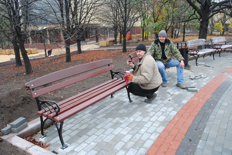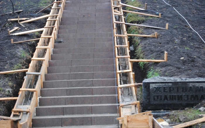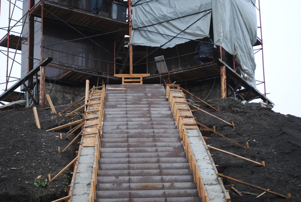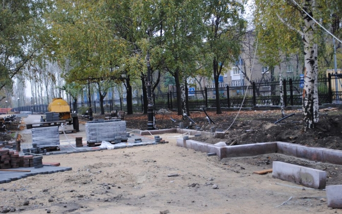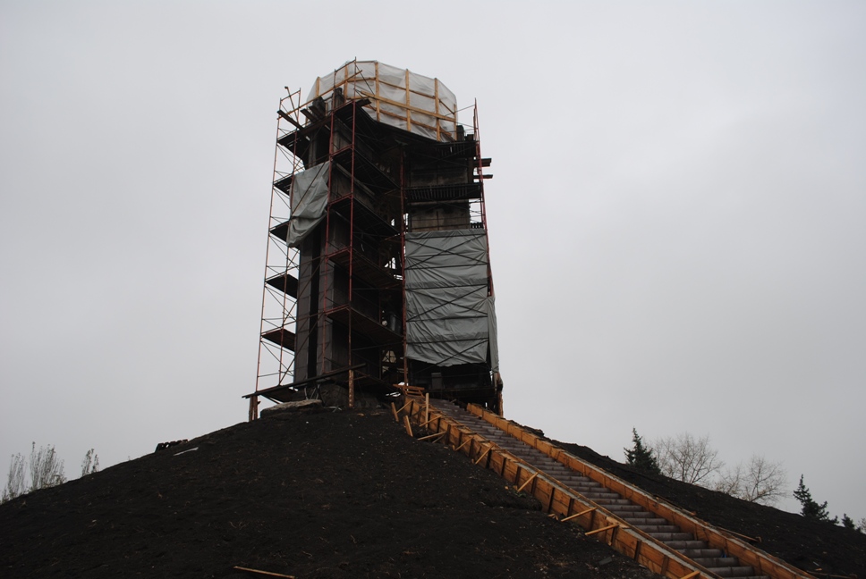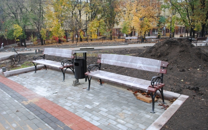 В межах робіт з реконструкції та благоустрою були проведені заміна облицювання трьох 12-метрових пілонів з дюралюмінію на облицювання гранітом по системі «навісні фасади», заміна трьох сходів і підпірних стінок новими з облицюванням гранітом, заміна асфальтобетонного покриття існуючих доріжок на покриття плиткою. Також по всьому периметру встановлено паркове освітлення (по аналогії з центральними проспектами і бульварами міста), 32 лавочки, система поливу.