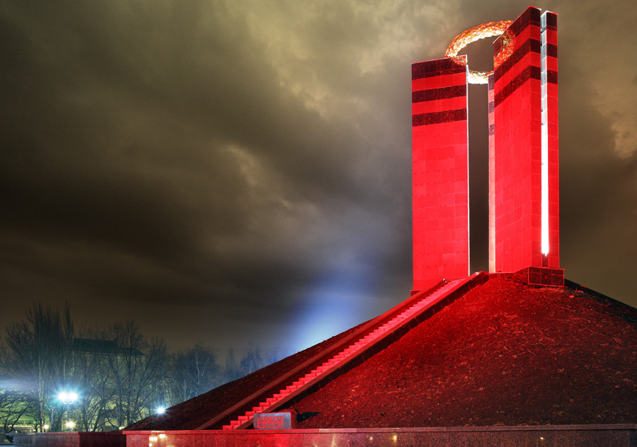 Вінок, який вінчає пілони, покритий позолотою. Озеленення території виконано різними, в тому числі і екзотичними породами дерев, чагарників і, звичайно ж, квітів (всього понад тисячу одиниць).